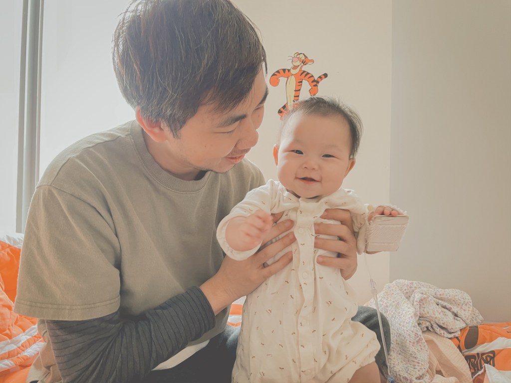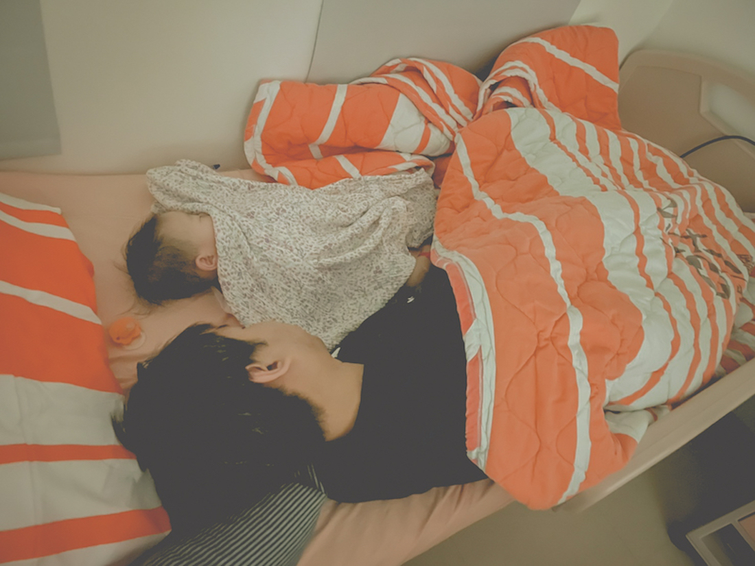 後來秧在爸爸的懷裡睡著,我卻還在哭到呼吸困難,不得不說,除了無法把孩子從身體裡擠出來,爸爸這個角色也是不容易,06抱著秧輕聲安慰我,叫我冷靜,但其實他的心已痛到炸裂,他還是跟自己說要撐住,一手抱著女兒、一手安慰老婆。住院期間,我好幾次看到他拼命忍著眼匡裡的淚水(因為不只是上針,還有抽血、抽痰這種痛苦的過程等著秧),等一切平靜下來後,他才說他要去樓下走走、轉換一下心情,因為太心疼太難受了。我和秧真的很幸運,生命裡有06這樣堅韌地為著我們。