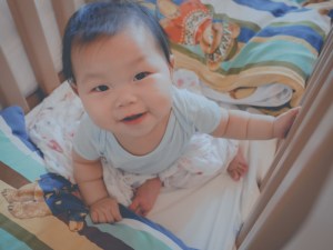 老師y:今天翻過床爬向同學,我以為她又要去找人家玩喔,結果不是。